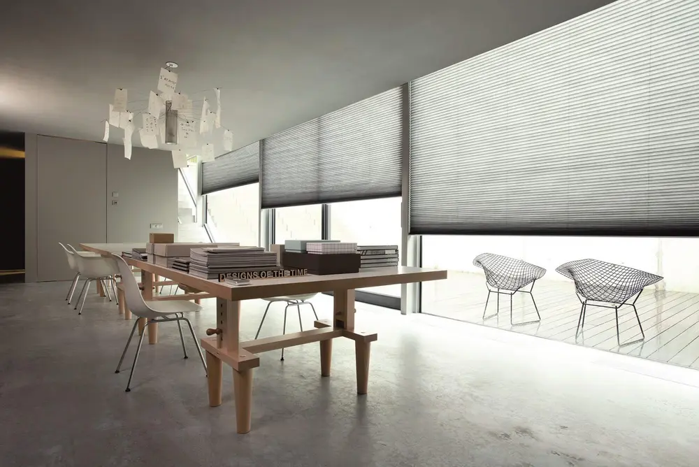 Les bâtiments sont de plus en plus souvent dotés de grandes baies vitrées. Les rideaux, les stores vénitiens et les shutters sont disponibles en plusieurs mètres de large, mais il est recommandé de travailler avec plusieurs panneaux ou lamelles.